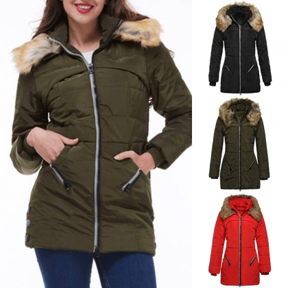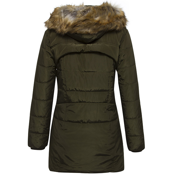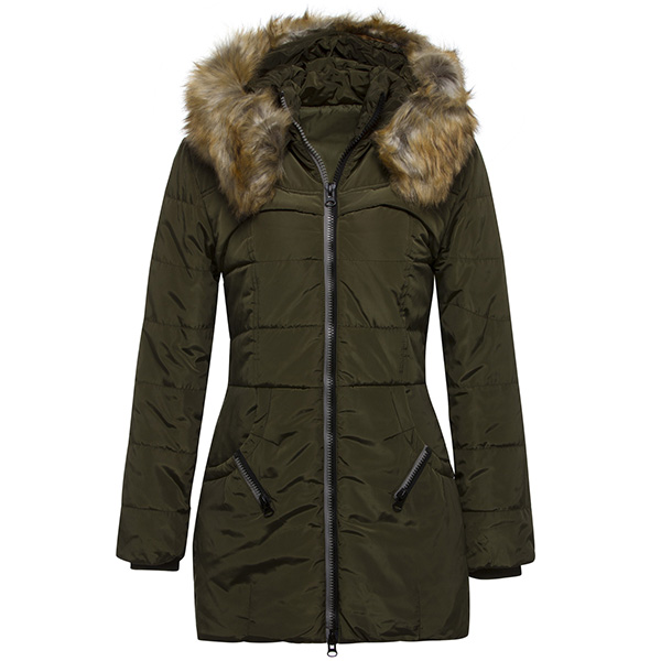 Hey,girls,you can invite this padded coat to get prepared for the chilly days. Solid color style,finished with long sleeve,faux fur spliced hooded and a fit silhouette,this piece not only can give you a warm and comfortable day,but also can portray your figure. It is worth to be a staple in these cold days.