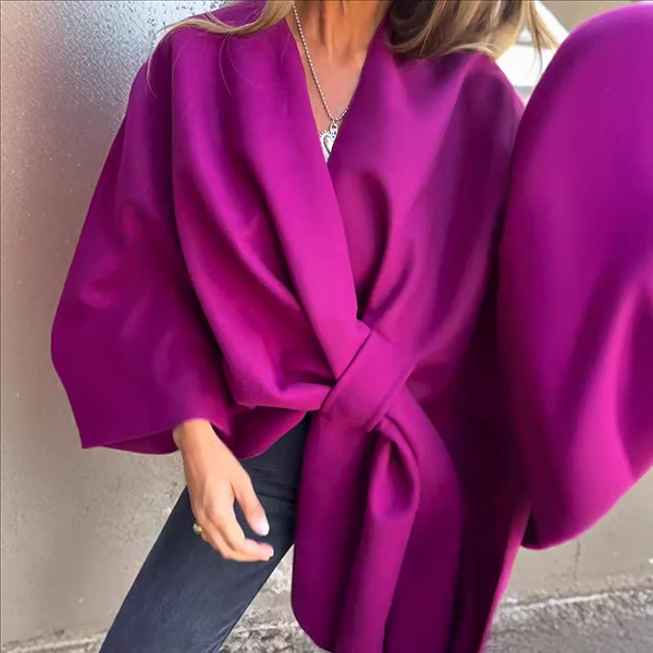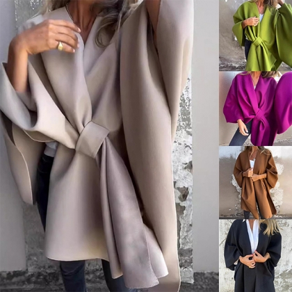 Enfärgad kappa med trendig knutdetalj framtill