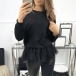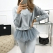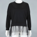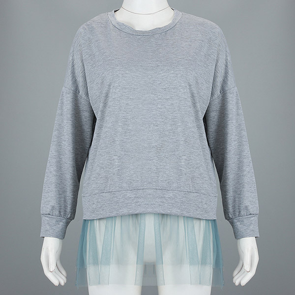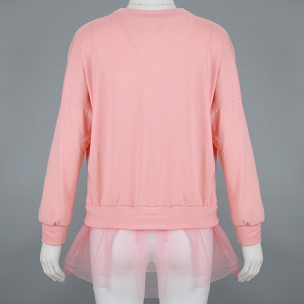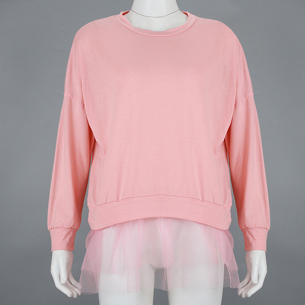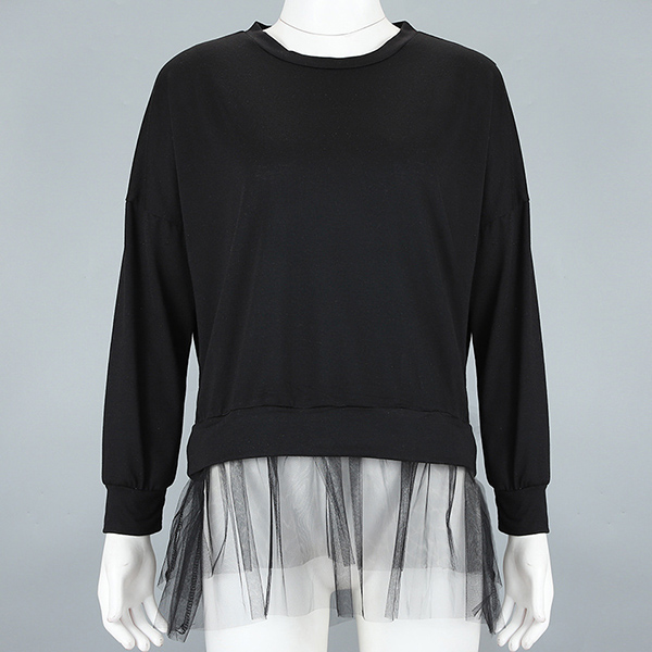 Fashion Solid Color Gauze Spliced Hem Round Neck Sweatshirt