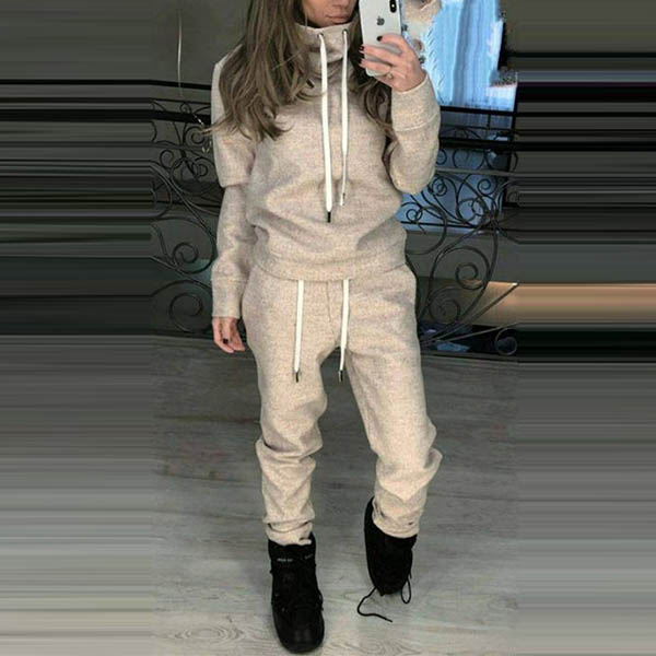 When the days get cold,if you still wanna maintain a casual and relaxed style,you can turn to your eyes focused on this sports suit. It comes with a solid color,the high collar with drawstring design makes it look more stylish and attractive. It also can ensure you a warm and comfortable day.
