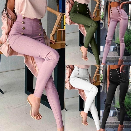 Make your wardrobe more complete by adding this simple,cozy,stylish and all-match pencil pants. It comes with a solid color,with high waist,a fit silhouette and double-breasted design,this piece can showcase your slender figure as well as offer you different matching styles.
