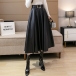 Fashion Solid Color High Waist PU Leather Skirt with Waistband