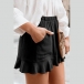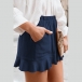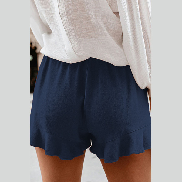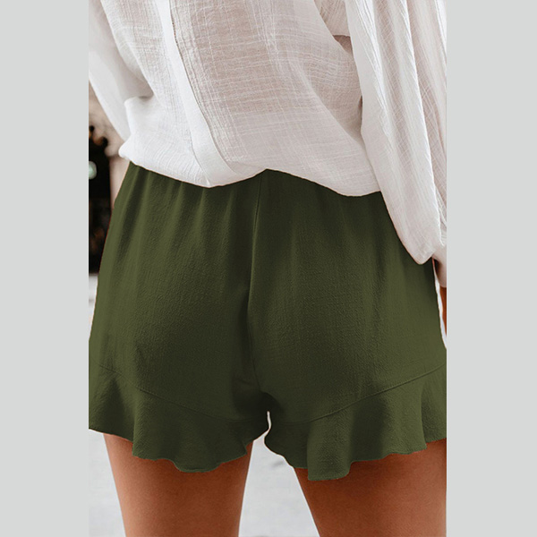Fashion Solid Color High Waist Ruffle Hem Shorts