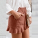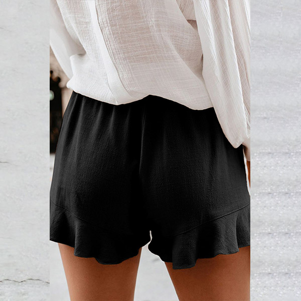 When you wanna flaunt off your charming and slender legs,this shorts is a good choice. Boasts a solid color,finished with high waist and a ruffle hem,this shorts that combines of cozy,stylish vibes is perfect fit for matching with different style tops.