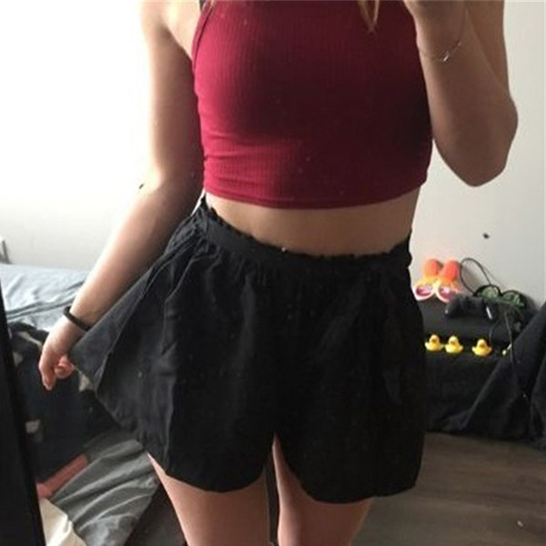 This shorts is a good way to showcase your charming and slender legs. Boasts a solid color,the ruffle high waist and waist strap design will make this piece look more attractive. No matter what kind of tops you pair it,it can make you look fashionable!