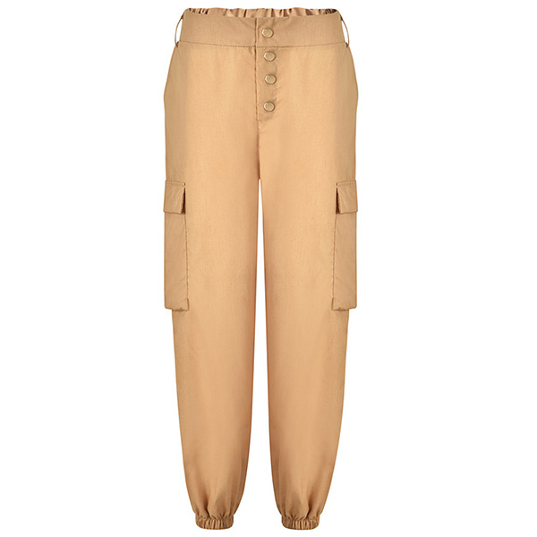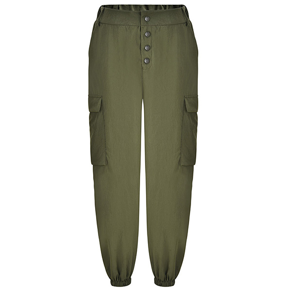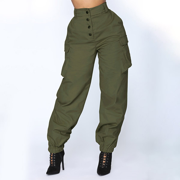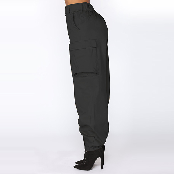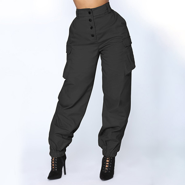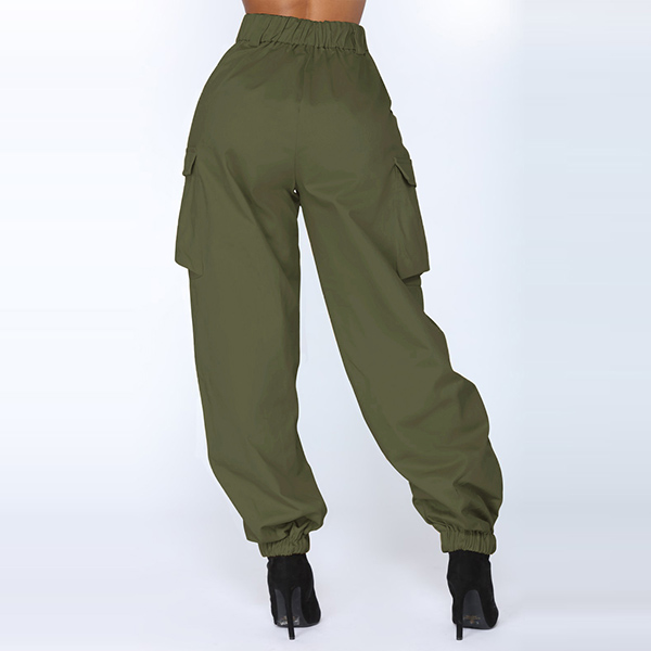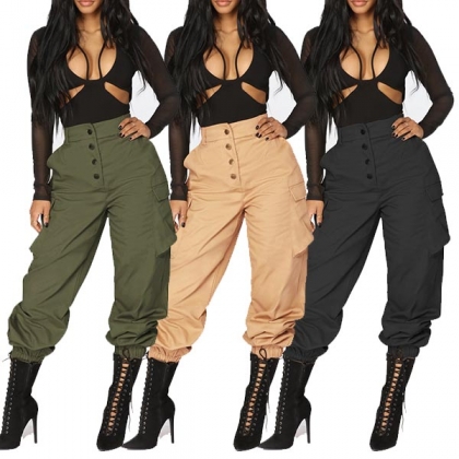 Fashion Solid Color High Waist Side-pocket Casual Pants
