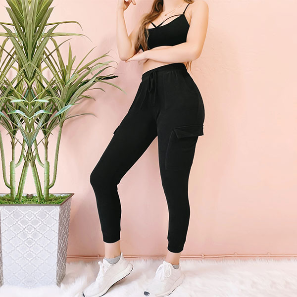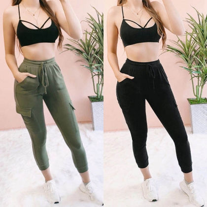 Finish a casual,relaxed yet stylish daily look with this pants. Crafted in a solid color,with high waist and a fit silhouette,this pants of course can showcase your figure. The side-pocket design will make it look more attractive. When matching with a crop top,you can look sexy yet feminine.