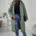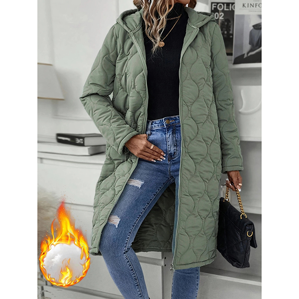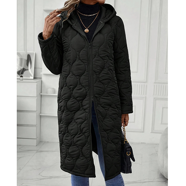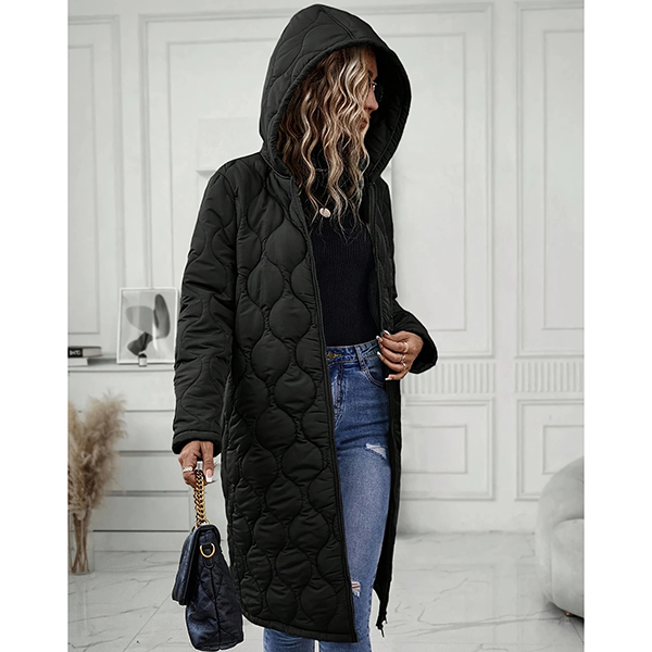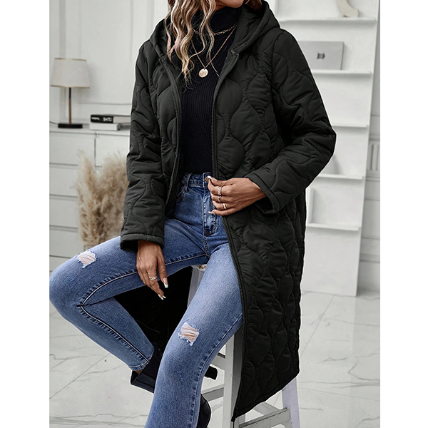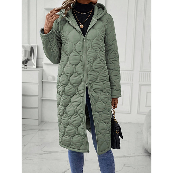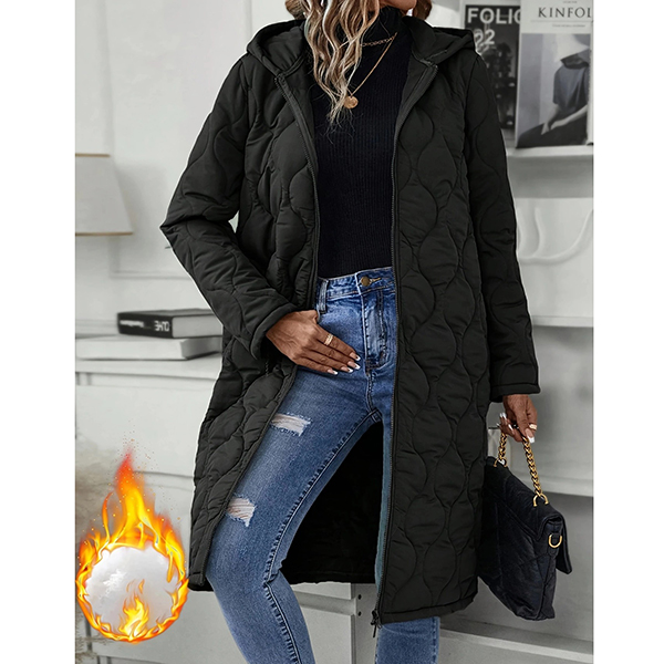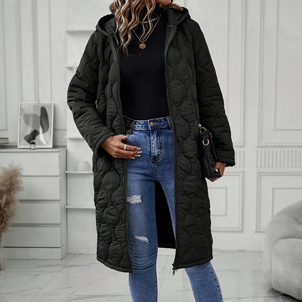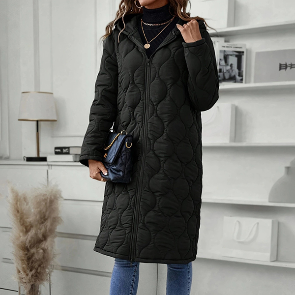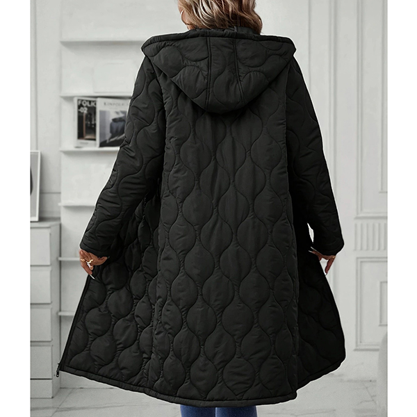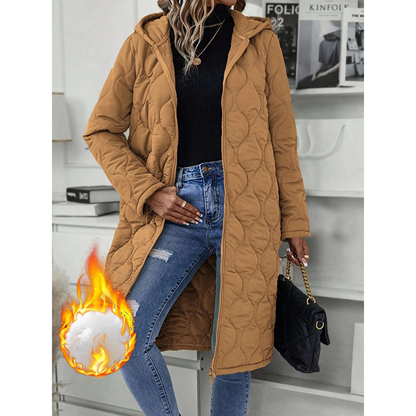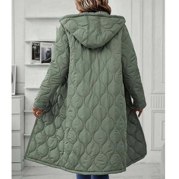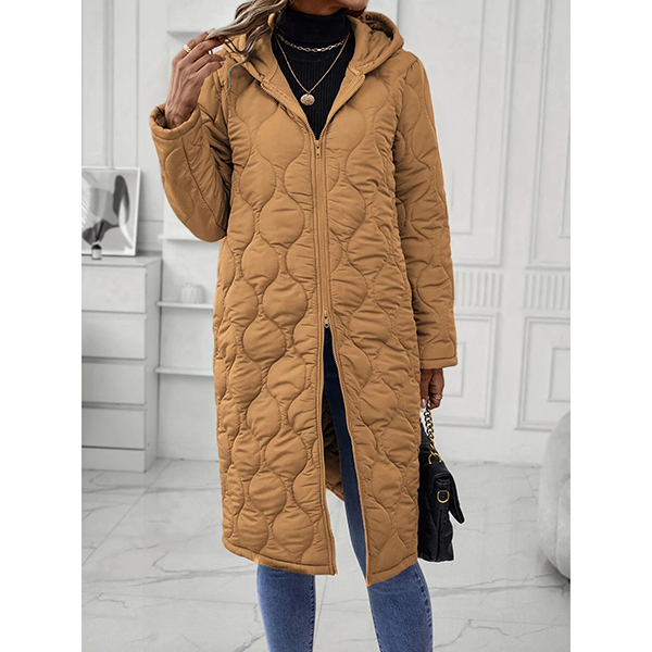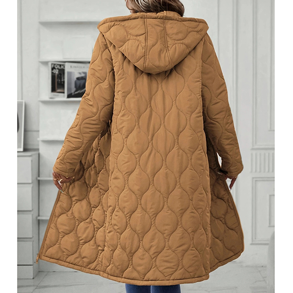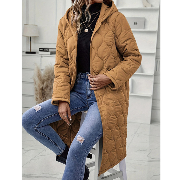 Quiltad enfärgad trendjacka med huva och långa ärmar