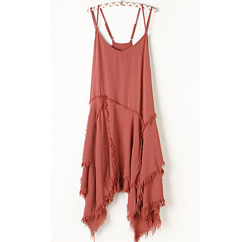 Let this sling dress accompany your summer days. Sling style,with backless and irregular hem design,