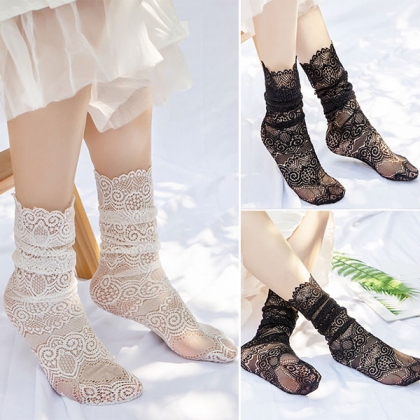 You can add a dash of sweet vibes to your look with the help of this pair of lace socks. Solid color style,crafted from soft and breathable fabric,which can offer you a long-lasting comfort. Attracted? Then buy one pair!