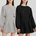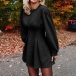 Fashion Solid Color Lantern Sleeve High Waist Dress