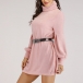 When the days get a little cold,this knit dress is worth to be your new darling. Comes with a sweet yet stylish pink tone,finished with lantern sleeve and turtleneck design,this piece can keep you warm while it exudes your style. Perhaps adding a thin waistband would offer you a more charming look.