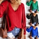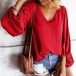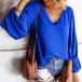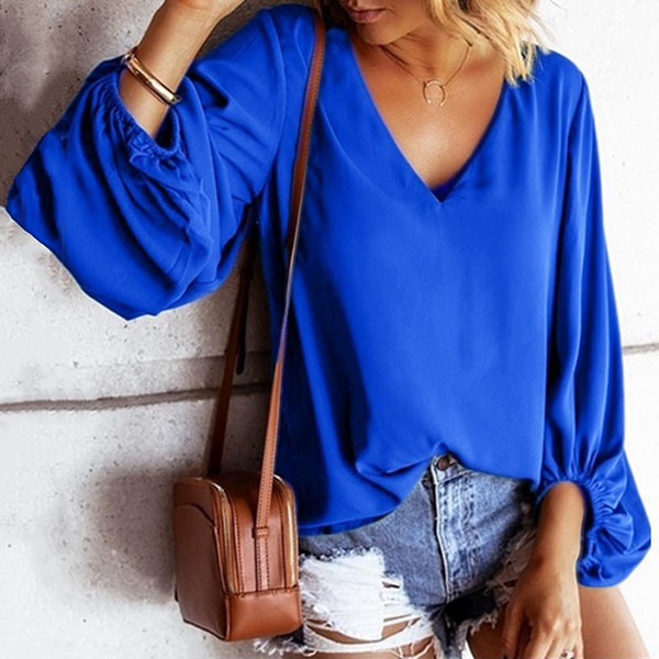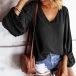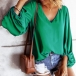 Fashion Solid Color Lantern Sleeve V-neck Loose Top