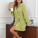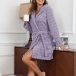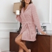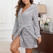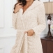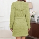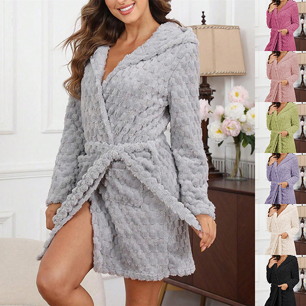 Trendig enfärgad plyschmorgonrock med huva och justerbart knytskärp