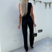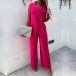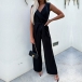 How about this jumpsuit? It features a solid color design with a lapel V-neckline and self-tie detailing that adds a touch of elegance to your look. The wide-leg design and comfortable fit make it perfect for a summer day out or a night on the town.