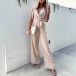 Fashion Solid Color Lapel V-neck Self-tie Wide-leg Jumpsuit