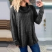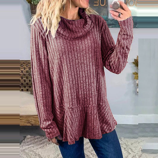 Fashion Solid Color Long Sleeve Cowl Neck Loose T-shirt