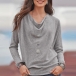 Den här långärmade t-shirten är tillverkad i en enfärgad färg och har en enkel, elegant design som är perfekt för dina vardagliga dagar. Tillverkad av mjukt och luftigt tyg, plagget är särskilt utformat för att hålla dig bekväm. Det höljehalsade designen ger en extra attraktiv touch. Du kan överväga att komplettera med ett gnistrande halsband för att förstärka din totala charm.