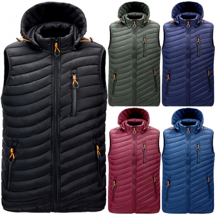 Fashion Solid Color Long Sleeve Detachable Hooded Man's Vest