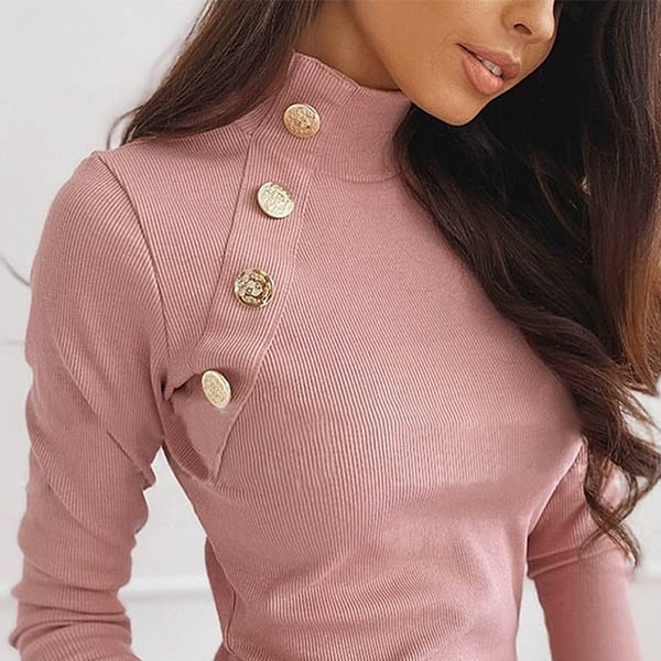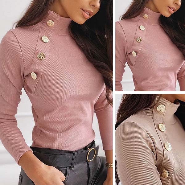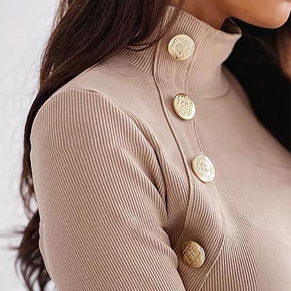 När dagarna blir kalla behöver din garderob en stilren och mångsidig topp som erbjuder en rad matchningsmöjligheter. Den har en enfärgad design med långa ärmar, hög krage och en ren siluett – enkel men ändå mysig. Knapparna ger dessutom en extra touch av stil. Detta underbara plagg är en smart investering, tro mig.