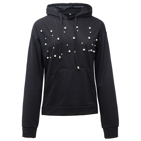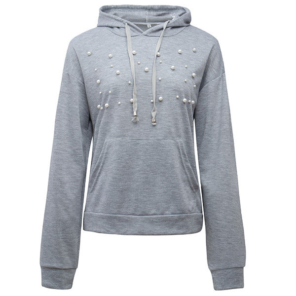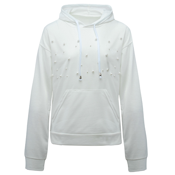 Fashion Solid Color Long Sleeve Hooded Beaded Sweatshirt