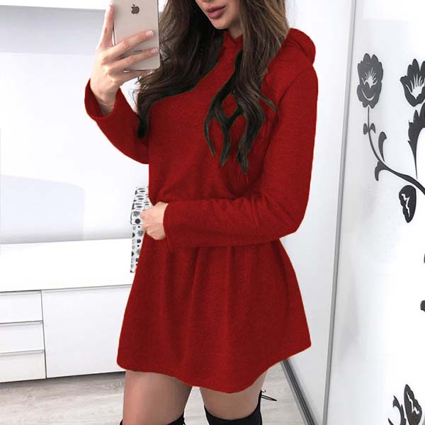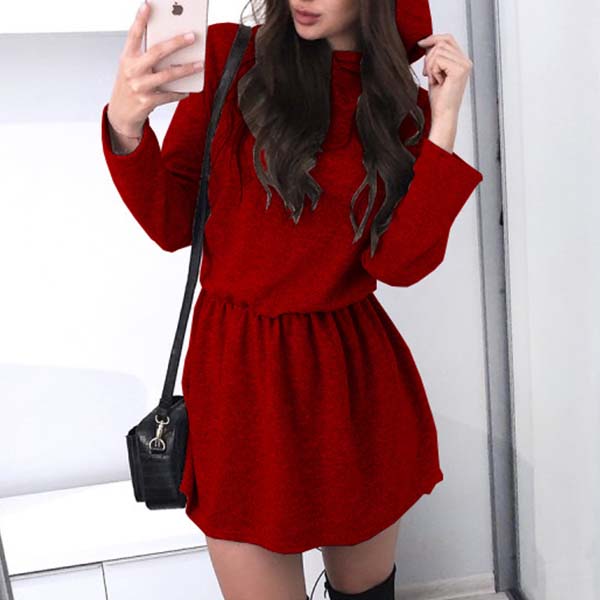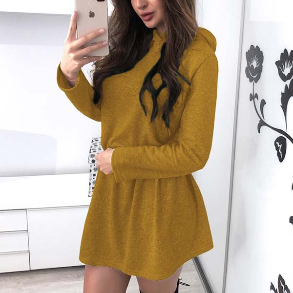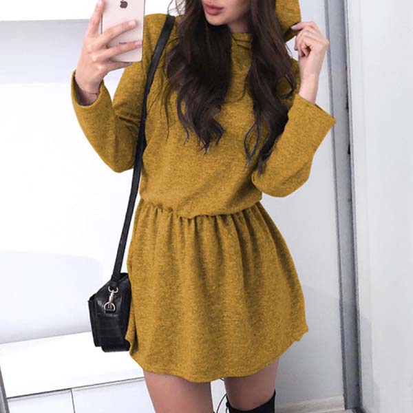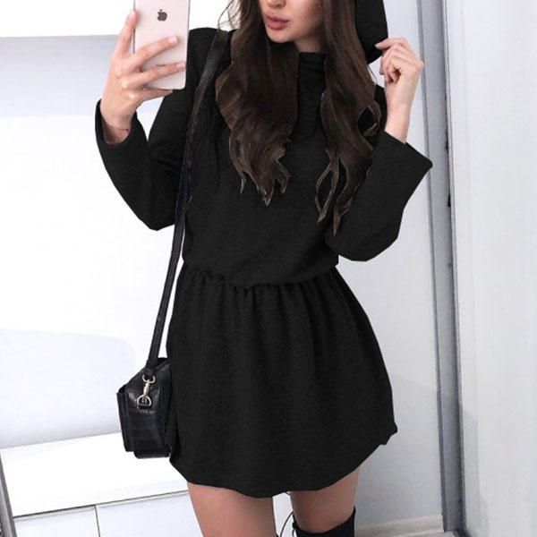 When you have no time to think about what to wear for your busy workdays,you can just make your eyes focused on this dress. Solid color style,finished with long sleeve,hooded silhouette and gathered waist design,this dress knows how to give you a cozy yet stylish style. Simply need to match with your favourite shoes,then you can be ready to go out!