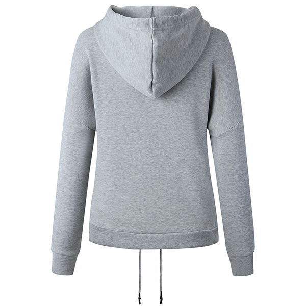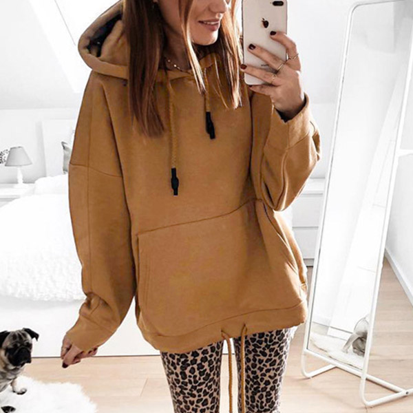 Fashion Solid Color Long Sleeve Hooded Loose Sweatshirt