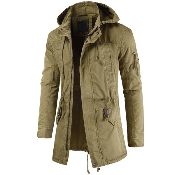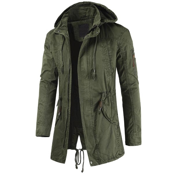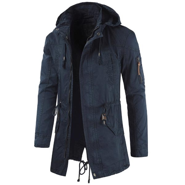 Du kan hålla dig varm samtidigt som du behåller din manliga charm i denna jacka. Enfärgad stil, avslutad med lång