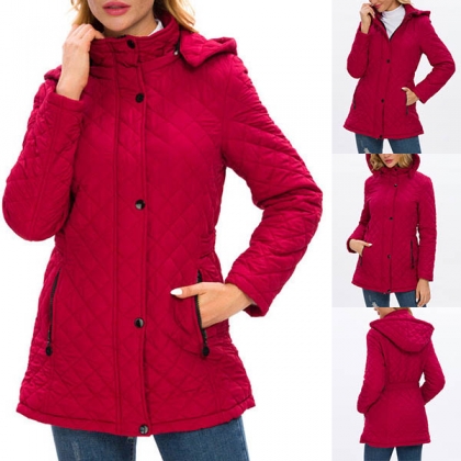 It would be wise for you to slip into this padded coat when the cold days hit. Solid color style,finished with long sleeve,hooded silhouette and zipper pocket,this wonderful piece can keep you warn while it maintains a simple but fashionable style.