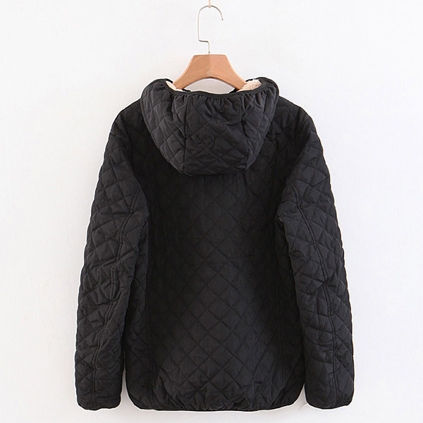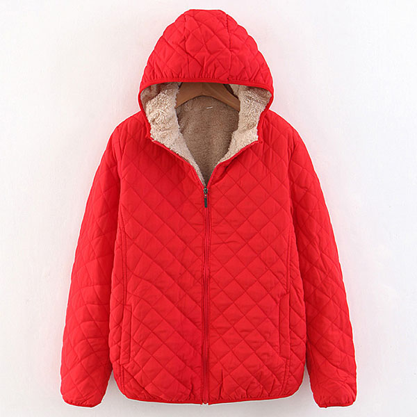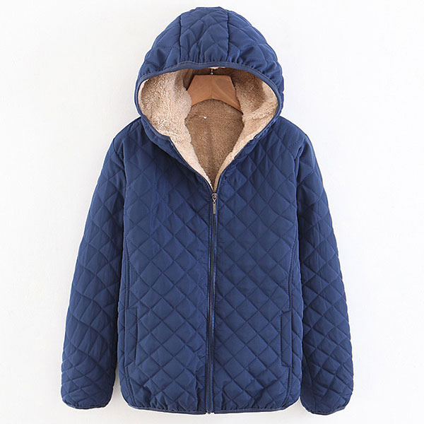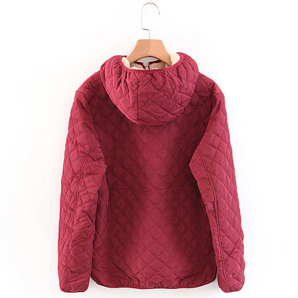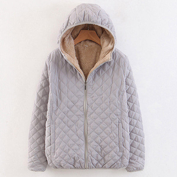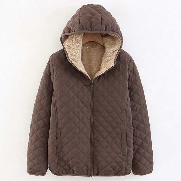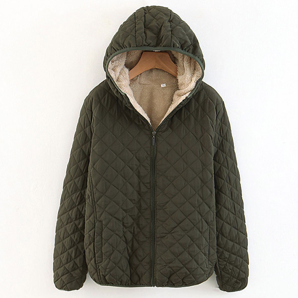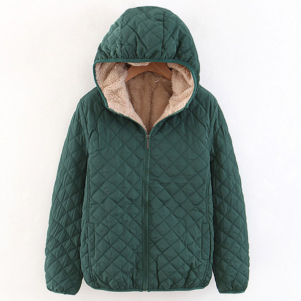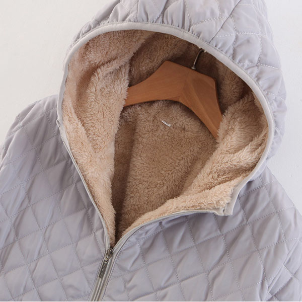 Fashion Solid Color Long Sleeve Hooded Plush Lining Coat