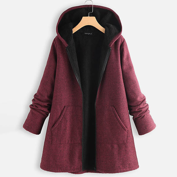 This coat features a solid color,the hooded silhouette and plush lining design can keep you warm and comfy all day. When the cold days hit,this simple,cozy and stylish coat is worth to be your new darling!