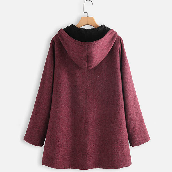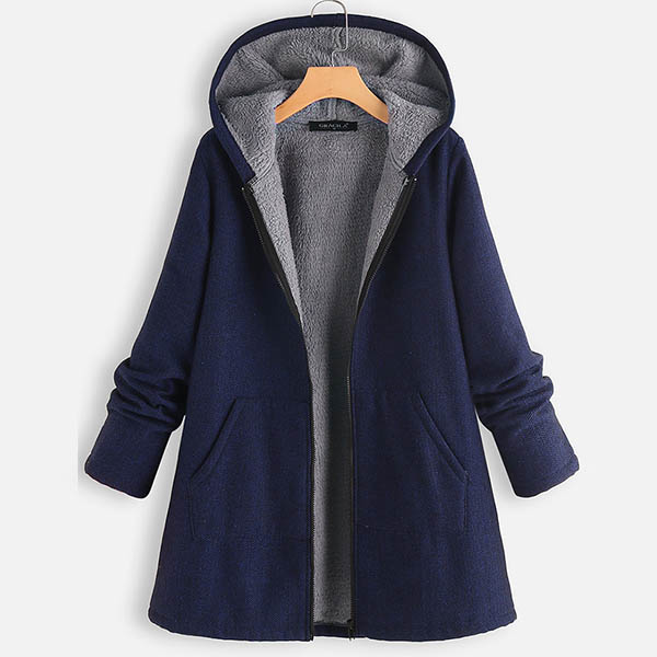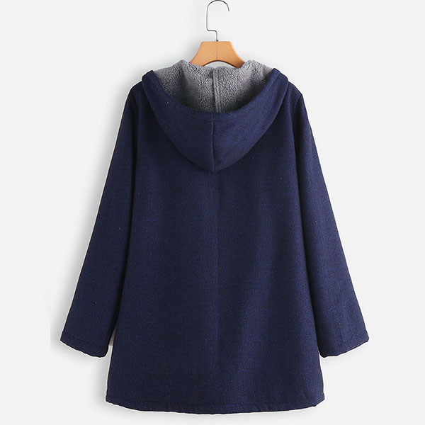 Fashion Solid Color Long Sleeve Hooded Plush Lining Coat