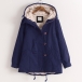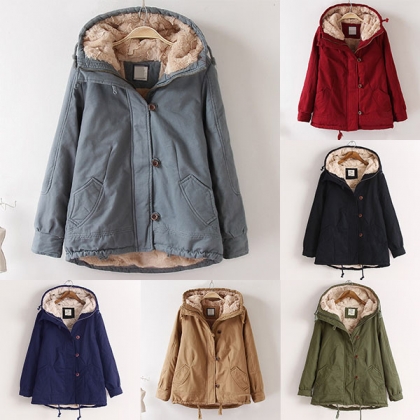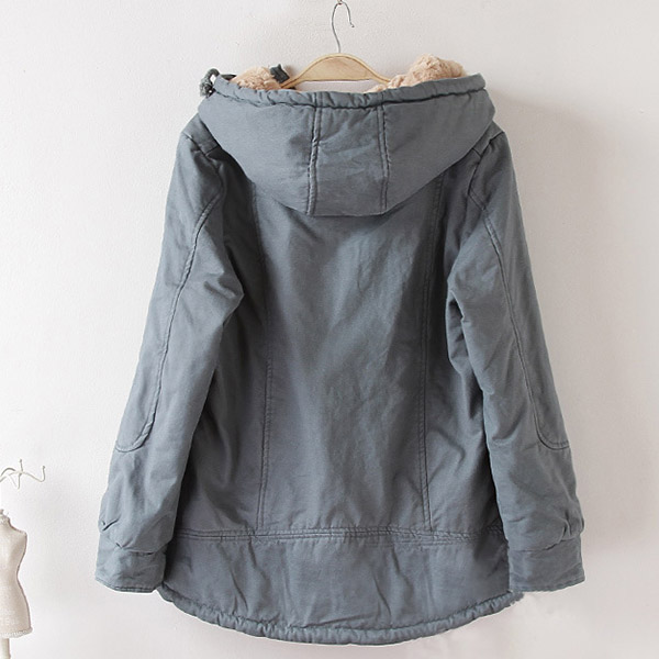 Fashion Solid Color Long Sleeve Hooded Plush Lining Coat