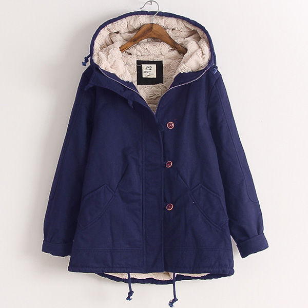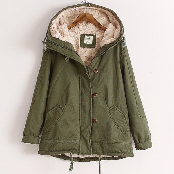 It is wise for you to slip into this coat when the chilly season hits. Comes with a solid color,the hooded silhouette and plush lining design can give you a warm and comfortable day. You can simply matching with your tight pants and martin boots for a stylish winter look.