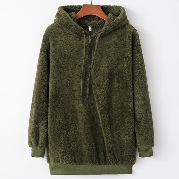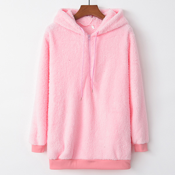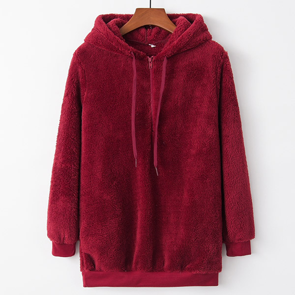 Add some warmth to your ensemble on that chilly day by wearing this plush sweatshirt. It comes with a solid color,the soft plush fabric and hooded silhouette design can give you a warm and comfortable day. We think you can match with a skinny jeans to finish a simple,laid-back yet fashionable daily look. Different colors for your optional.
