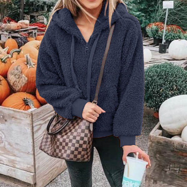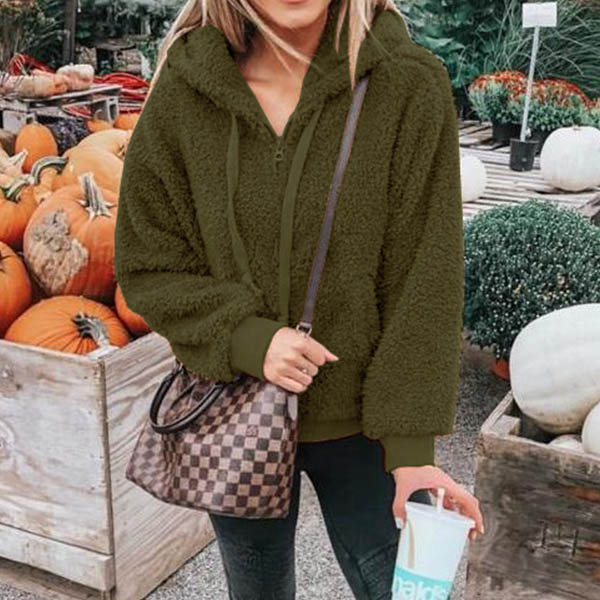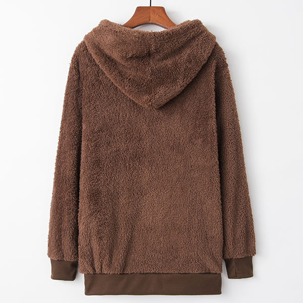 Fashion Solid Color Long Sleeve Hooded Plush Sweatshirt