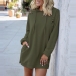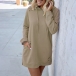 As for a simple,laid-back yet fashionable autumn look,you can just slip into this sweatshirt dress. It comes with a solid color,finished with long sleeve and hooded silhouette,classic yet stylish. The ripped details will further enhance its charm. Try to match with your casual flat shoes to enjoy your wonderful day!