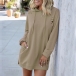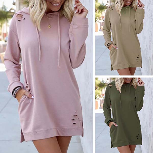 Fashion Solid Color Long Sleeve Hooded Ripped Sweatshirt Dress