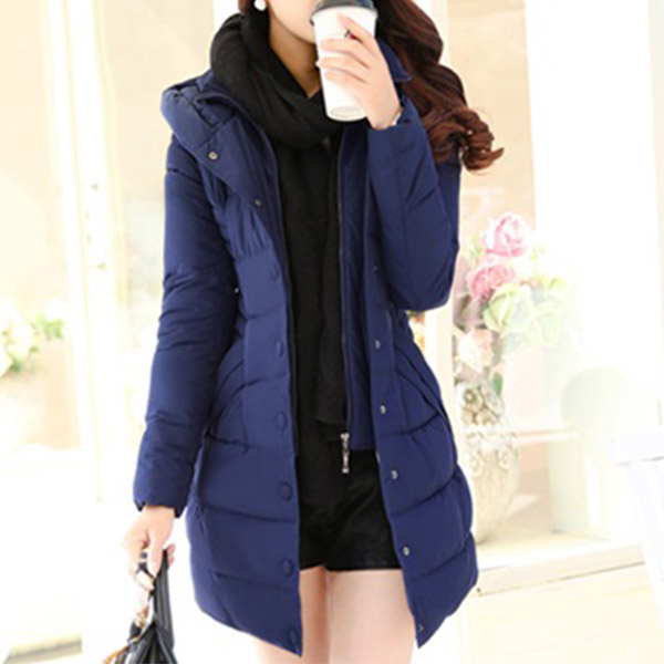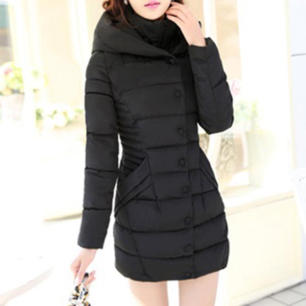 Fashion Solid Color Long Sleeve Hooded Slim Fit Padded Coat