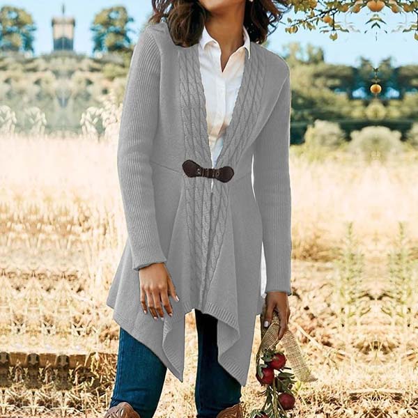 Fashion Solid Color Long Sleeve Irregular Hem Knit Cardigan