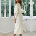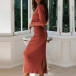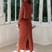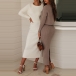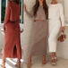 I dessa höstdagar kan detta mysiga men stilfulla stickade set i två delar enkelt väcka din uppmärksamhet. Enfärgad stil, inklusive en långärmad topp med rund hals och en hög midja slits nederdel, detta tvådelade set utstrålar din stil och charm. Så varför inte berika din garderobsensemble med detta tvådelade set?
