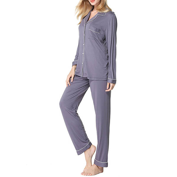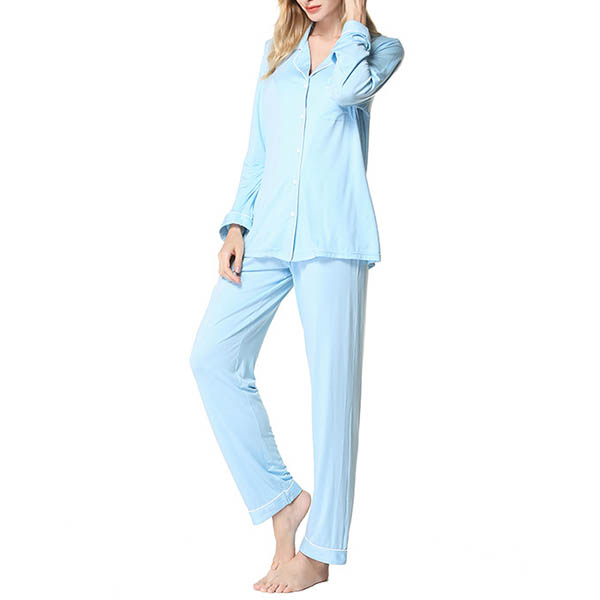 Your home time and sleeping time call for such a cozy yet stylish nightwear set. Solid color style,including a long sleeve lapel top and a pants,its soft and breathable fabric can give you an utmost comfort. So why not invite them to your wardrobe. You can have a good dream with this nightwear set!