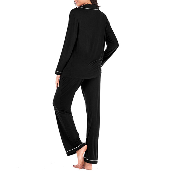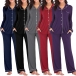 Fashion Solid Color Long Sleeve Lapel Top + Pants Nightwear Set