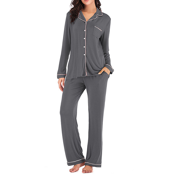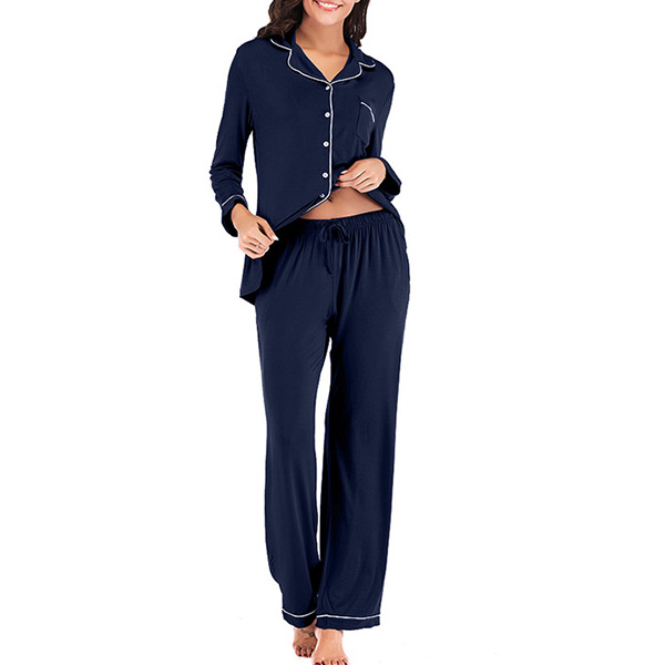 During your home time and sleeping time,you deserve to have an utmost comfort. So let this nightwear set give you that feeling. Solid color style,including a long sleeve lapel top and a pants,its soft and breathable fabric can give you a comfortable wearing feeling. Have a good dream with this nightwear set!