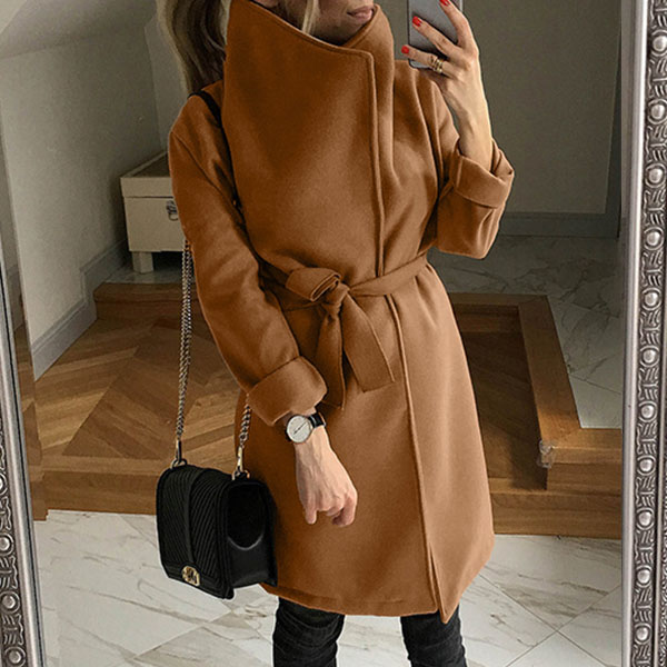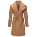 Fashion Solid Color Long Sleeve Lapel Woolen Coat with Waist Strap(It falls small)