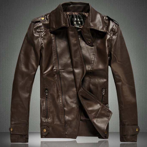 Wanna a handsome look? Then how could you miss this PU leather jacket? It features solid color style,
