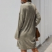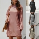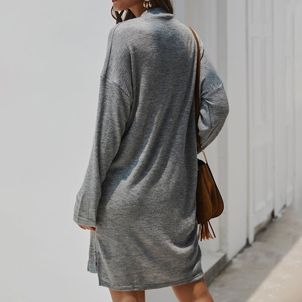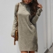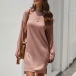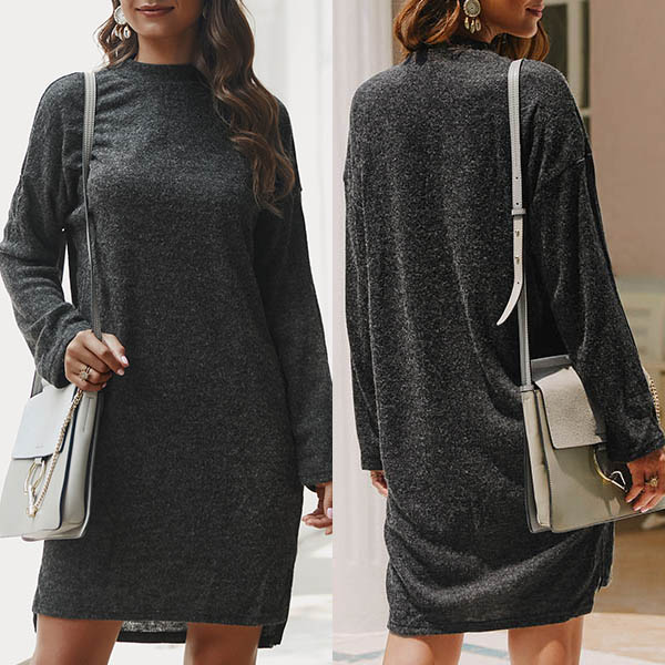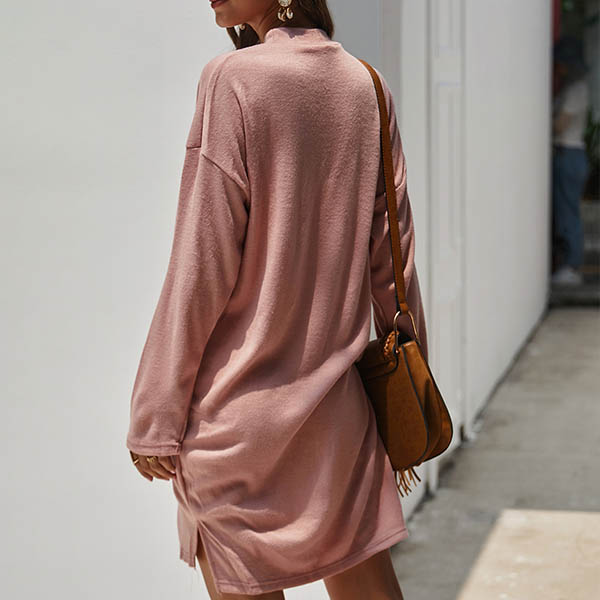 Fashion Solid Color Long Sleeve Mock Neck High-low Hem Dress