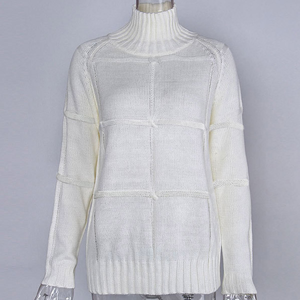 Fashion Solid Color Long Sleeve Mock Neck Loose Sweater