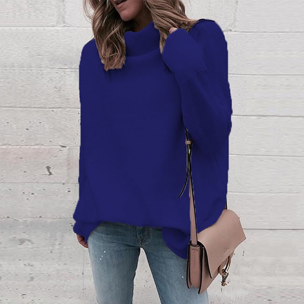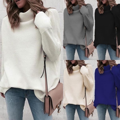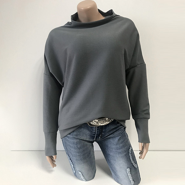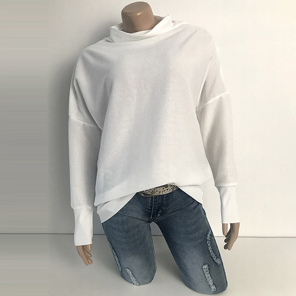 Fashion Solid Color Long Sleeve Mock Neck Loose Top