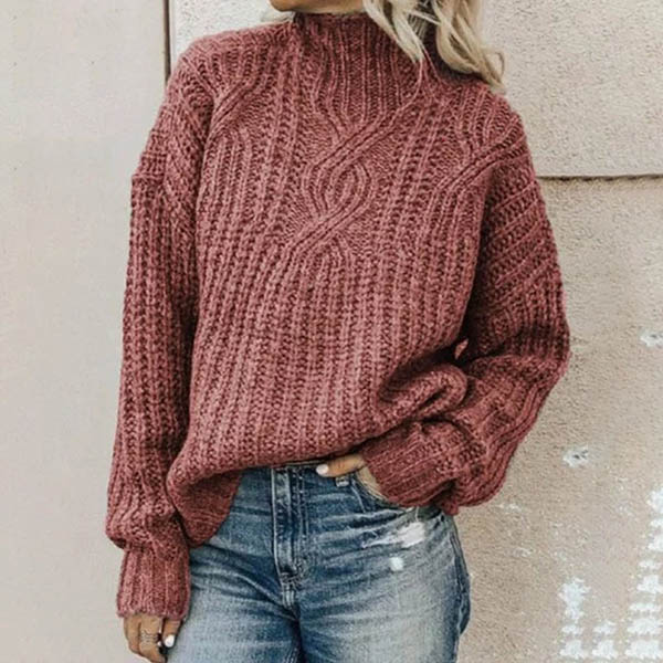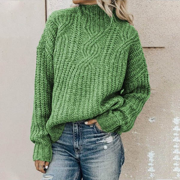 Fashion Solid Color Long Sleeve Mock Neck Sweater